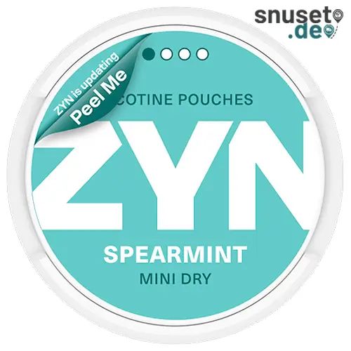 Zyn Spearmint Mini Dry 1 ist im Miniformat, mit milder Nikotinstärke und Minzaroma.